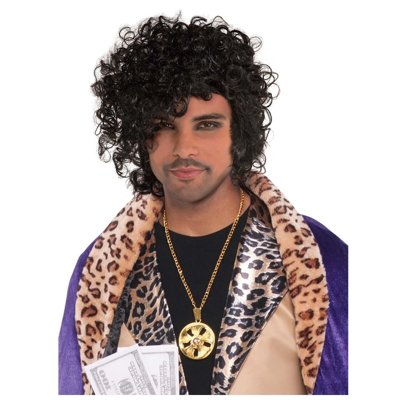 Amscan Pop Icon Prince Curly Black Hair Wig Celeb Halloween Costume Accessory