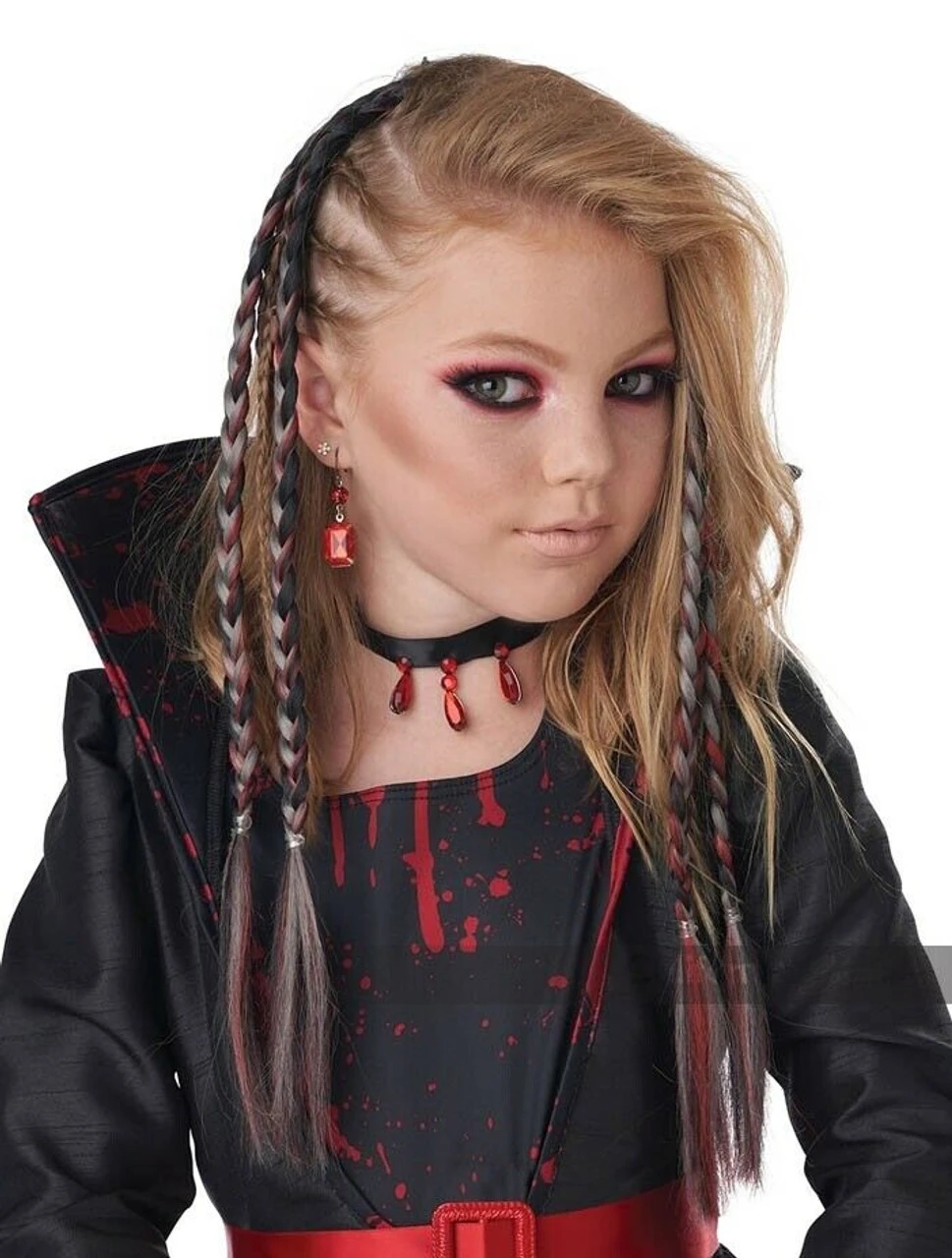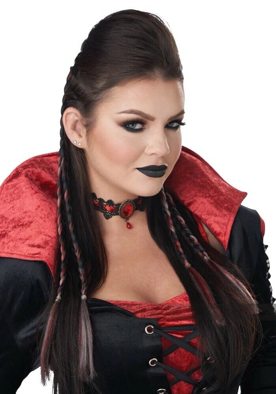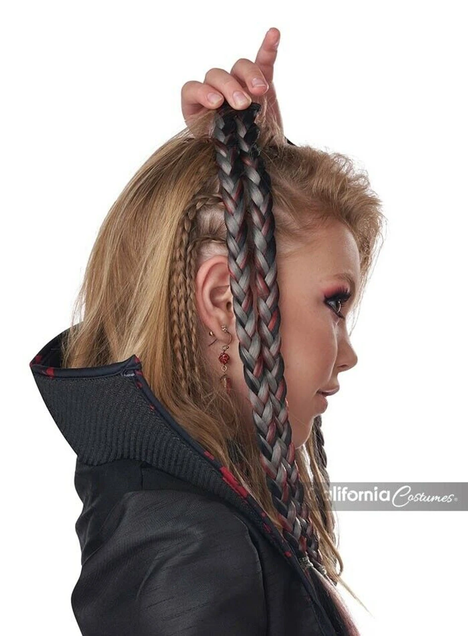 Product Description: The Clip-In Braids have black grey and red strands with clips at the end to attach. Comes with (2) two double ended braids