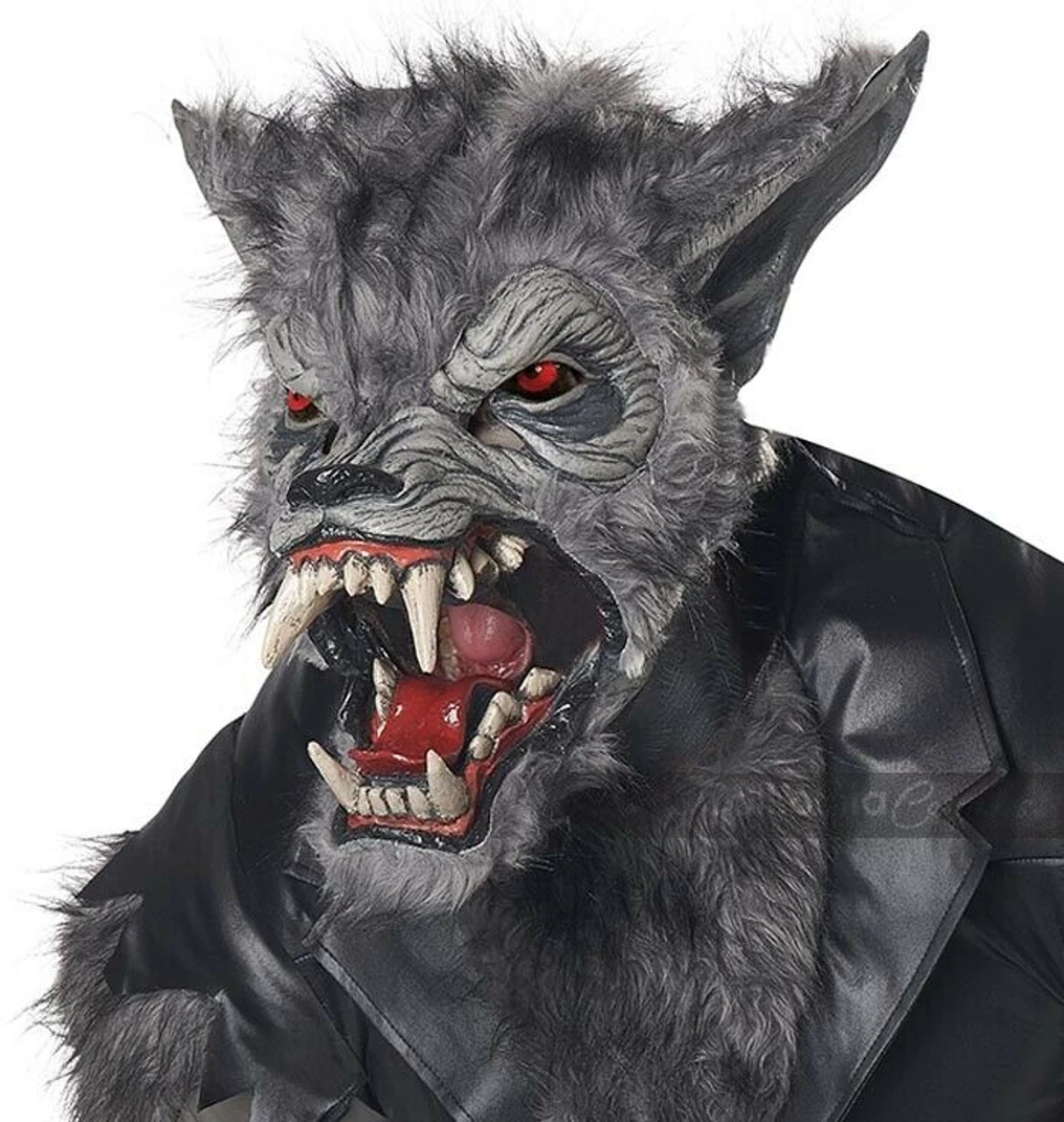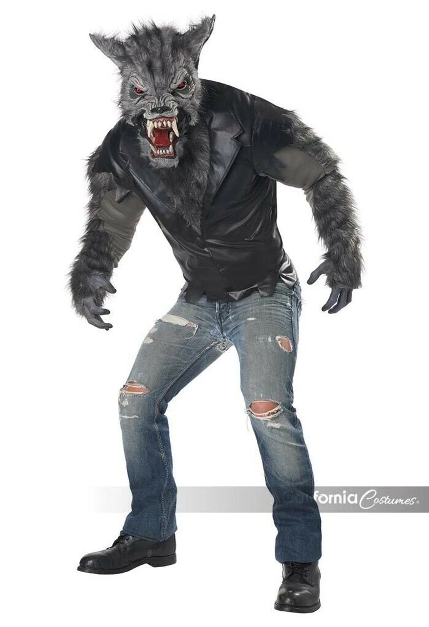 Product Description: The wolf beast rides again! The Full Moon Fury costume features a full front and back wolf mask with a separate and moveable lower jaw piece. The costume comes with a black vest with combined faux fur sleeves and chest/collar and a padded vest under layer for added mass.
