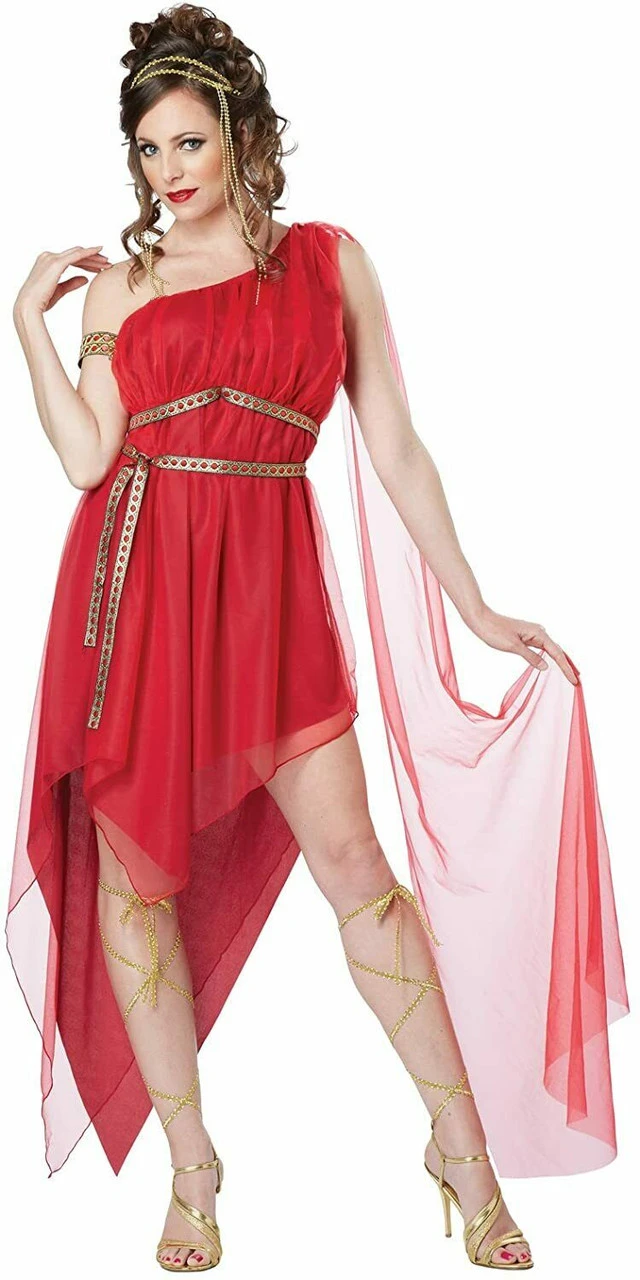 One Shoulder Red Dress with attached Shoulder Drape and Belt,