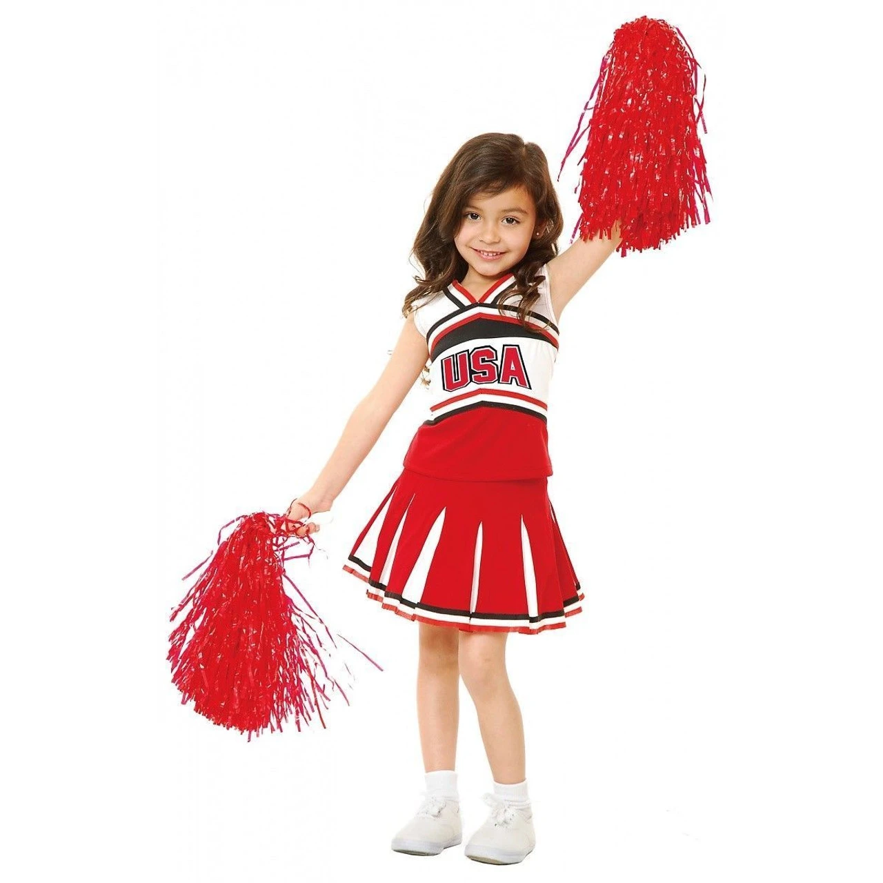 Our cute kids cheerleader costume includes a USA top and matching pleated skirt.
