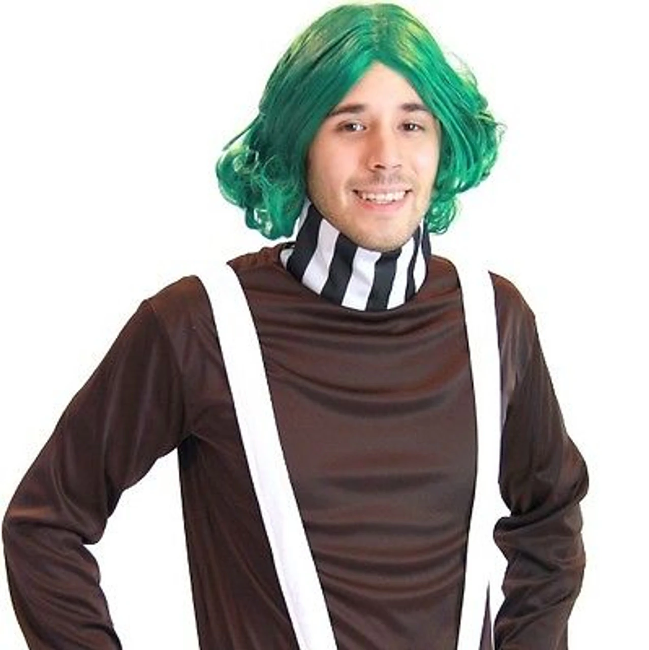 CHOCOLATE FACTORY WORKER ADULT HALLOWEEN DELUXE COSTUME WIG SUSPENDERS SET