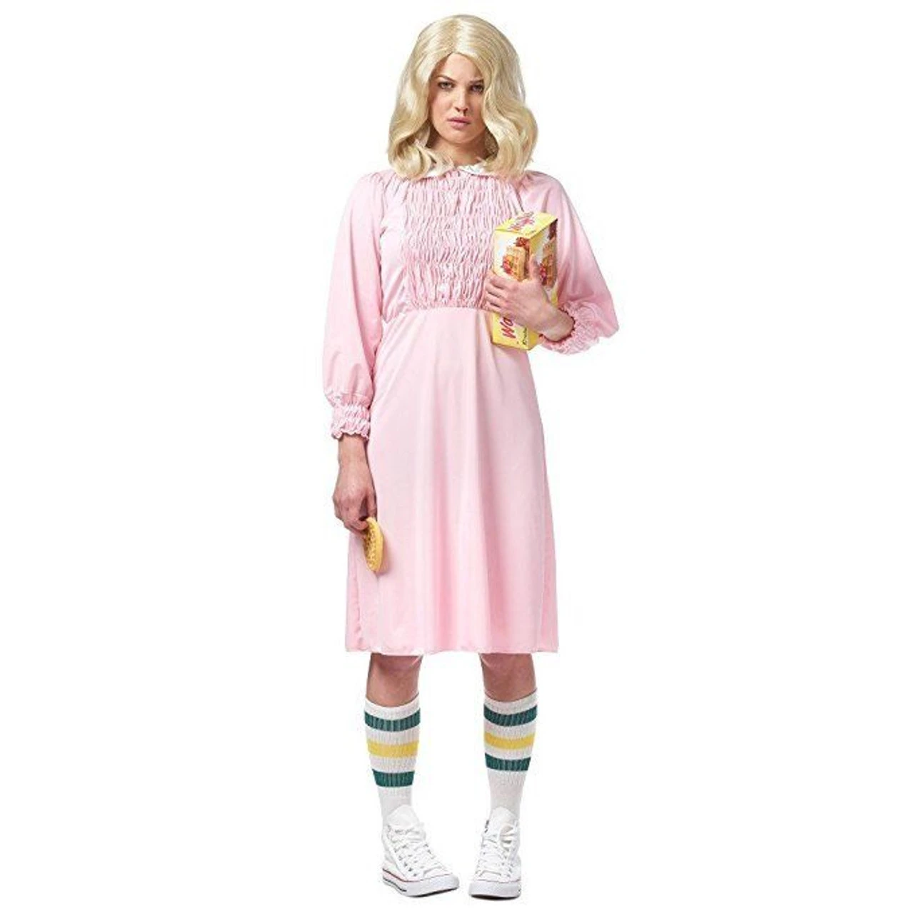 We’ve all seen some strange things, but nothing stranger than a dirt covered little girl, chowing down on Eggo waffles in the middle of aisle eleven at the grocery store. Dress up in this retro Strange Girl Adult Costume that comes complete with a vintage style pink dress with peter pan collar and 80s tube socks.