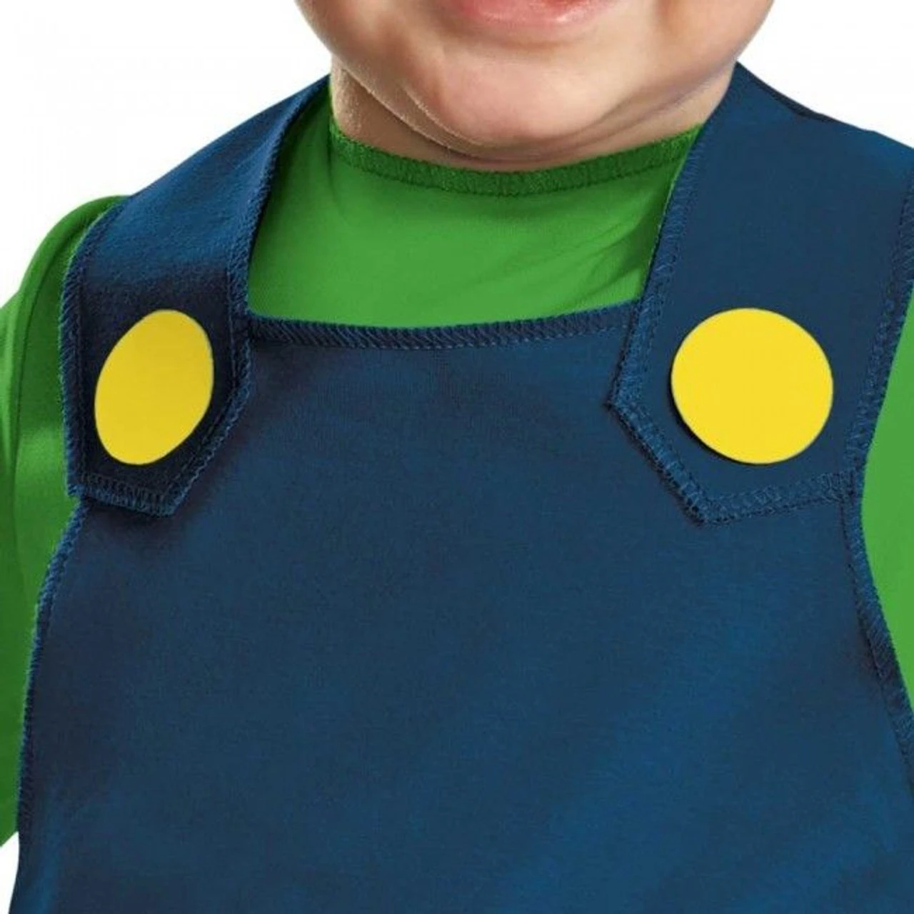 Jumpsuit, detachable belly, pair of gloves, and hat (makeup for mustache not included).