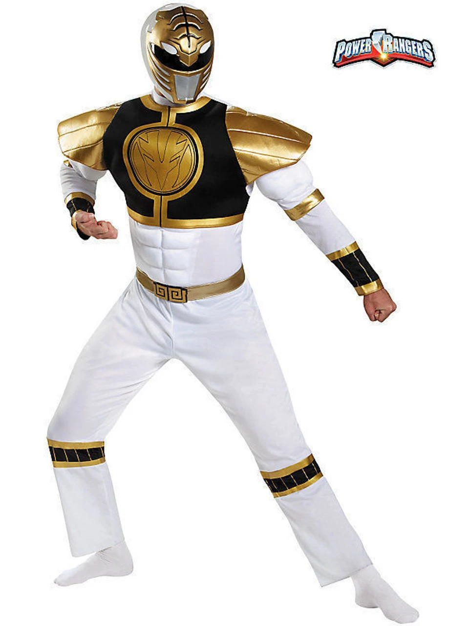 These white ranger costumes look awesome! These White Mighty Morphin Power Ranger muscle costumes will have you feeling a throw back for sure! Who didn’t love the Power Rangers? Get ready to suit up because you’ll be looking great in one of these costumes! These are great on their own, and even better with the other costumes and accessories available in our store!