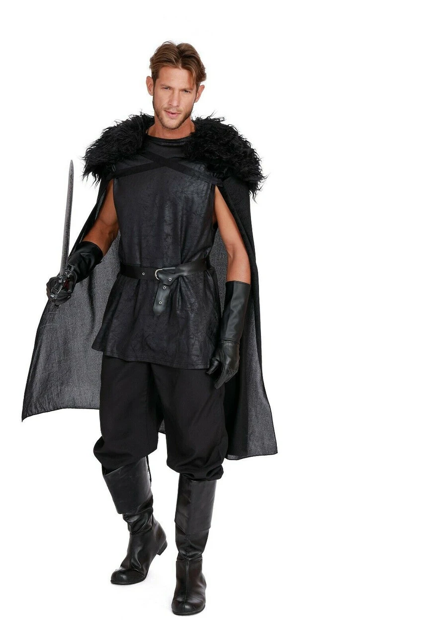 Be ready to slay a dragon in this gallant costume which features a faux-leather tunic top and full velvet cape with an oversized fur collar. Comes with a medieval-styled belt with Velcro closure. 3-Piece set: tunic top, velvet cape, and medieval-styled belt.Â