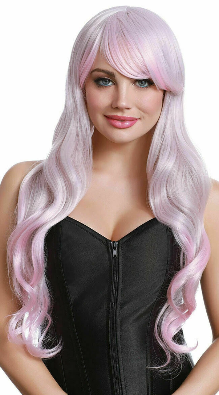 Dreamgirl Pink Grey Long Wavy Layered Hair Wig Adult Halloween Costume 11706