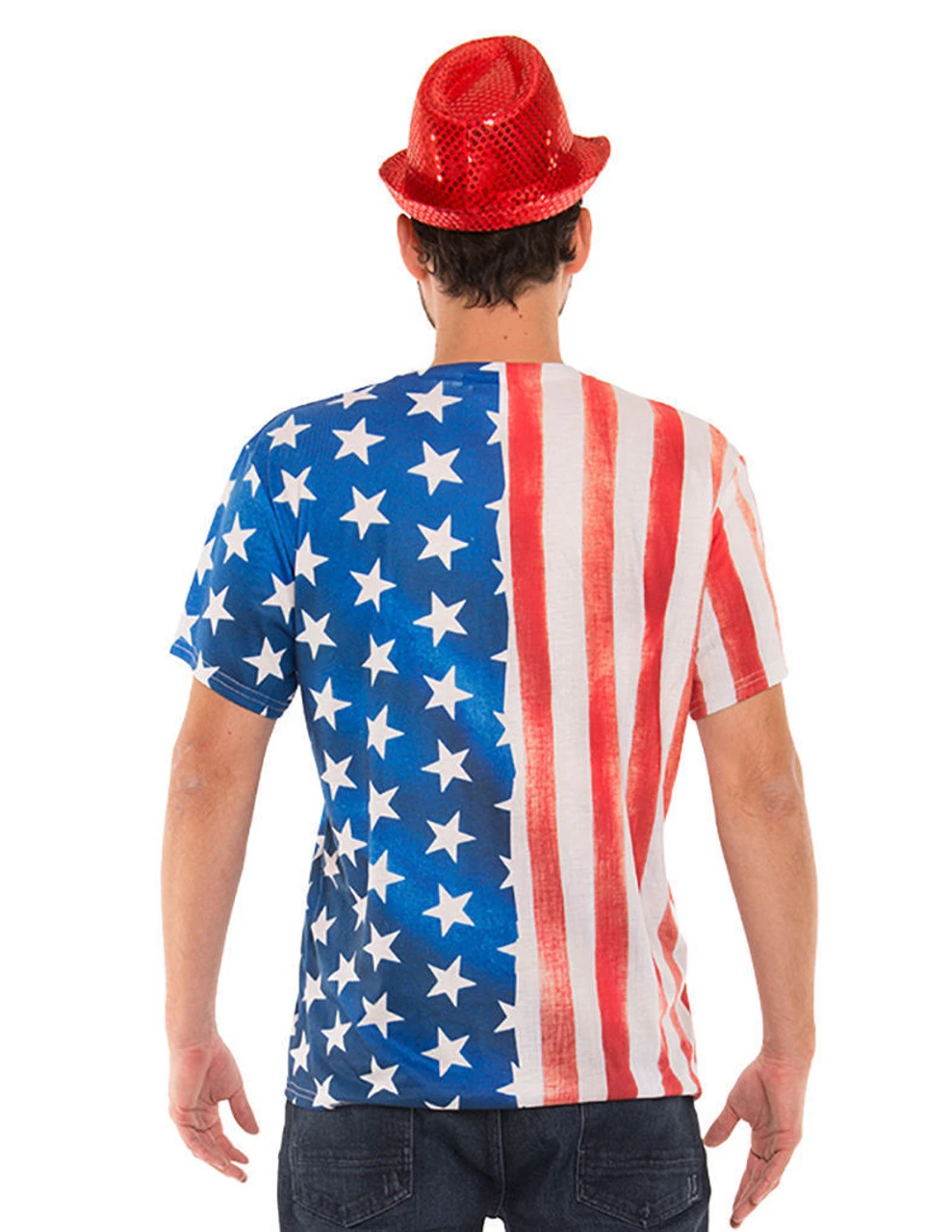 Celebrate your love for America with the Faux Real USA Tux! Sport the stars and stripes in a stylish tuxedo inspired t-shirt. Celebrate your love for America!