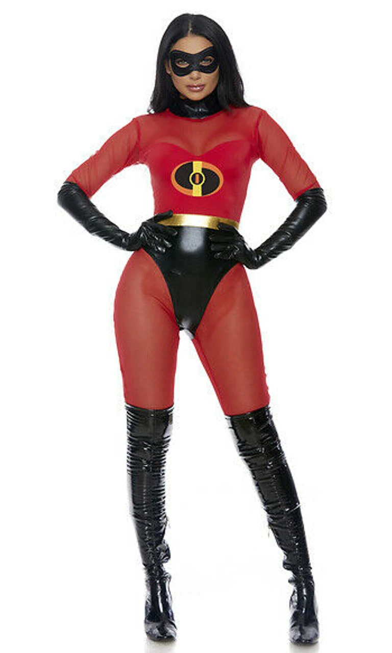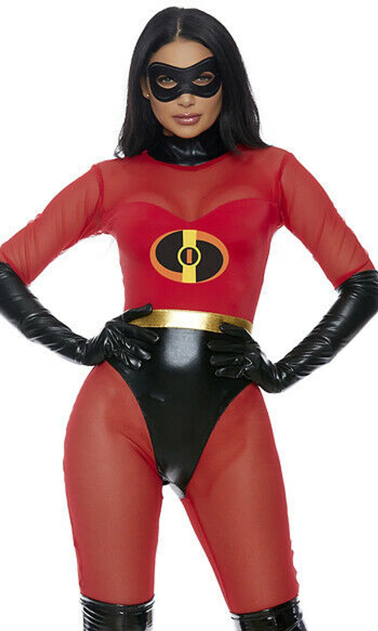 Red is as striking as it is showstopping in this sexy superhero costume. Suit up and get ready to save the world in this sheer bodysuit.