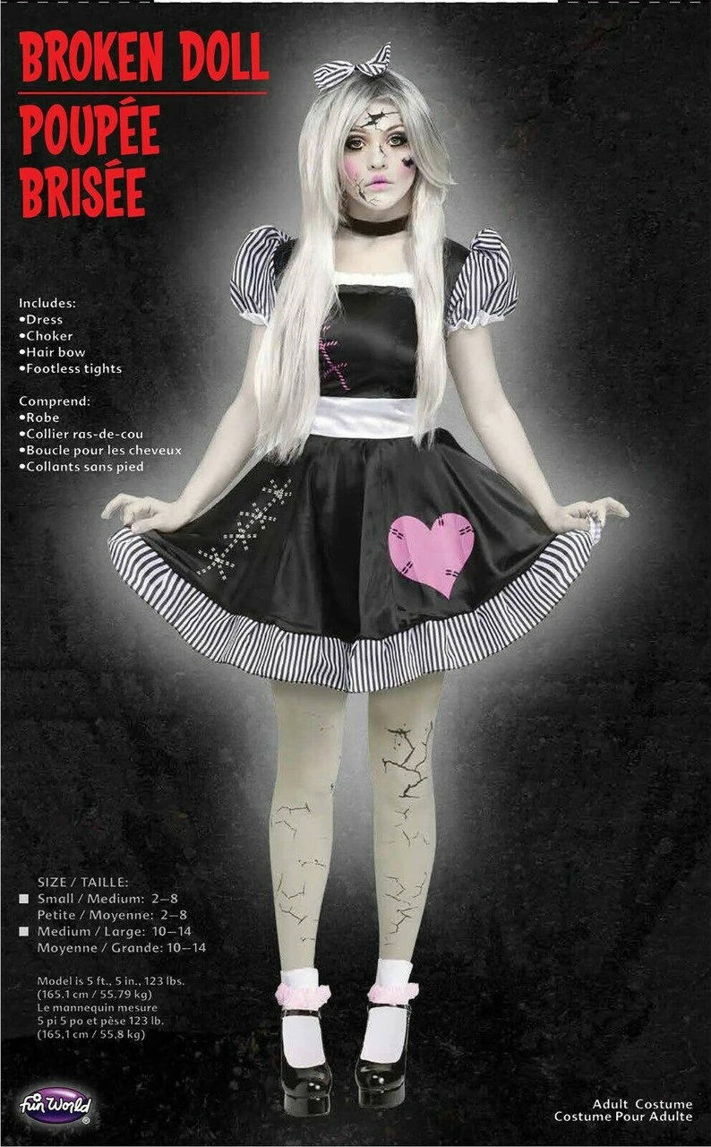 Fun World Broken Doll Cosplay Ragdoll Toy Horror Halloween Costume 124074