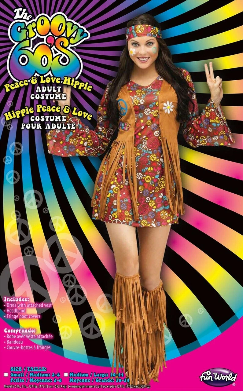 Fun World Peace & Love Hippie 1960’s Groovy Woodstock Halloween Costume 123454