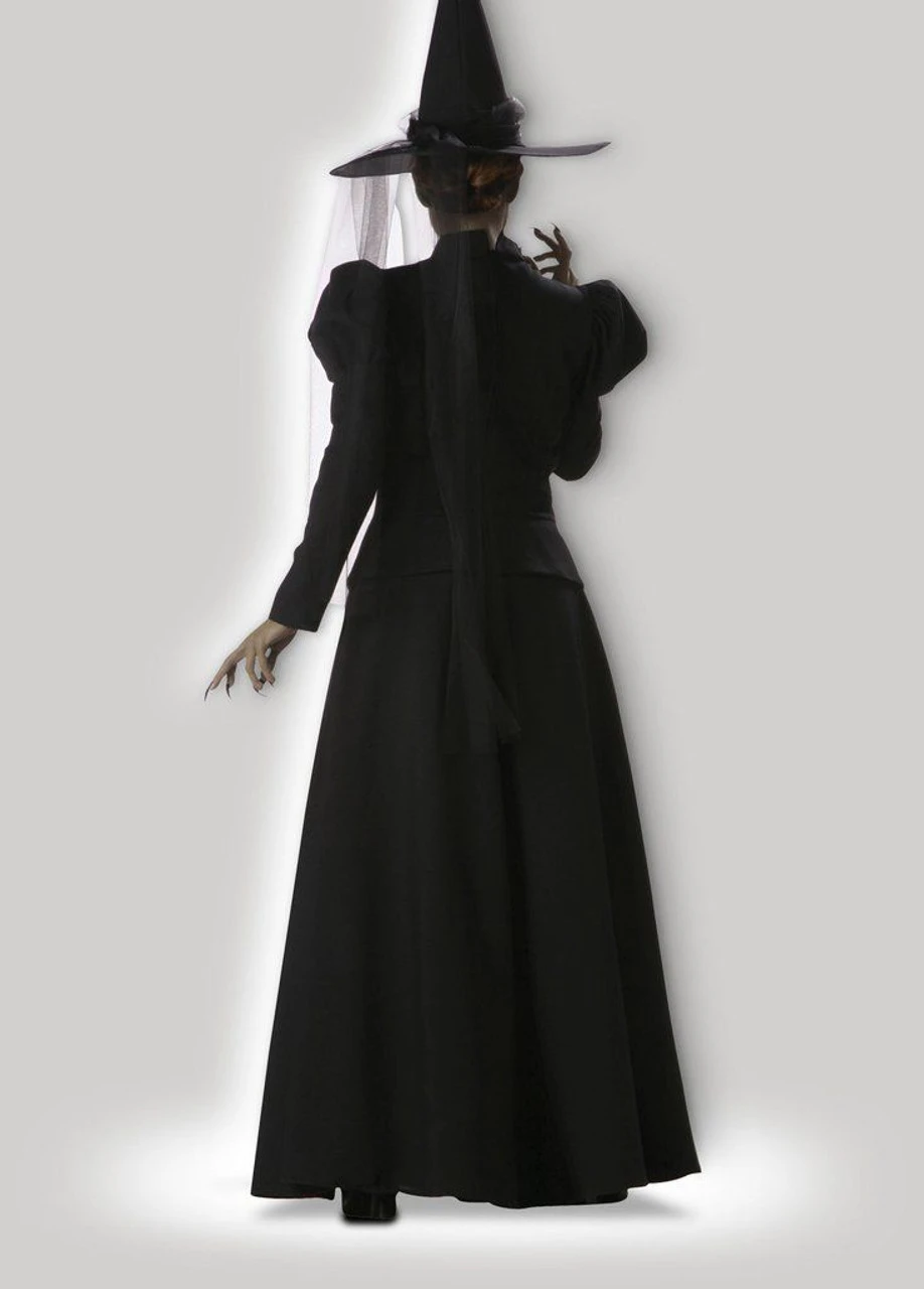 In the battle of good and bad witches, this is clearly a bad one – but in a great costume. Complete with tall pointy hat, antique silver buttons and a full petticoat, Toto better watch out!