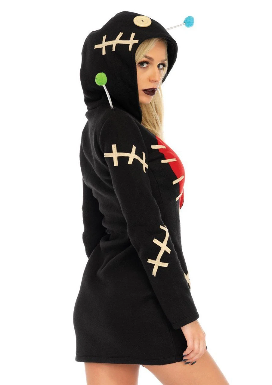 Just the right mix of creepy and cute, Leg Avenue’s Cozy Voodoo Doll is dangerously adorable! This zip-up voodoo cutie is made of super soft fleece and features stitch and pin details, a button eye hood, and spellbinding heart detail. Pairs perfectly with leggings or your favorite tights for a casual costume look!Â