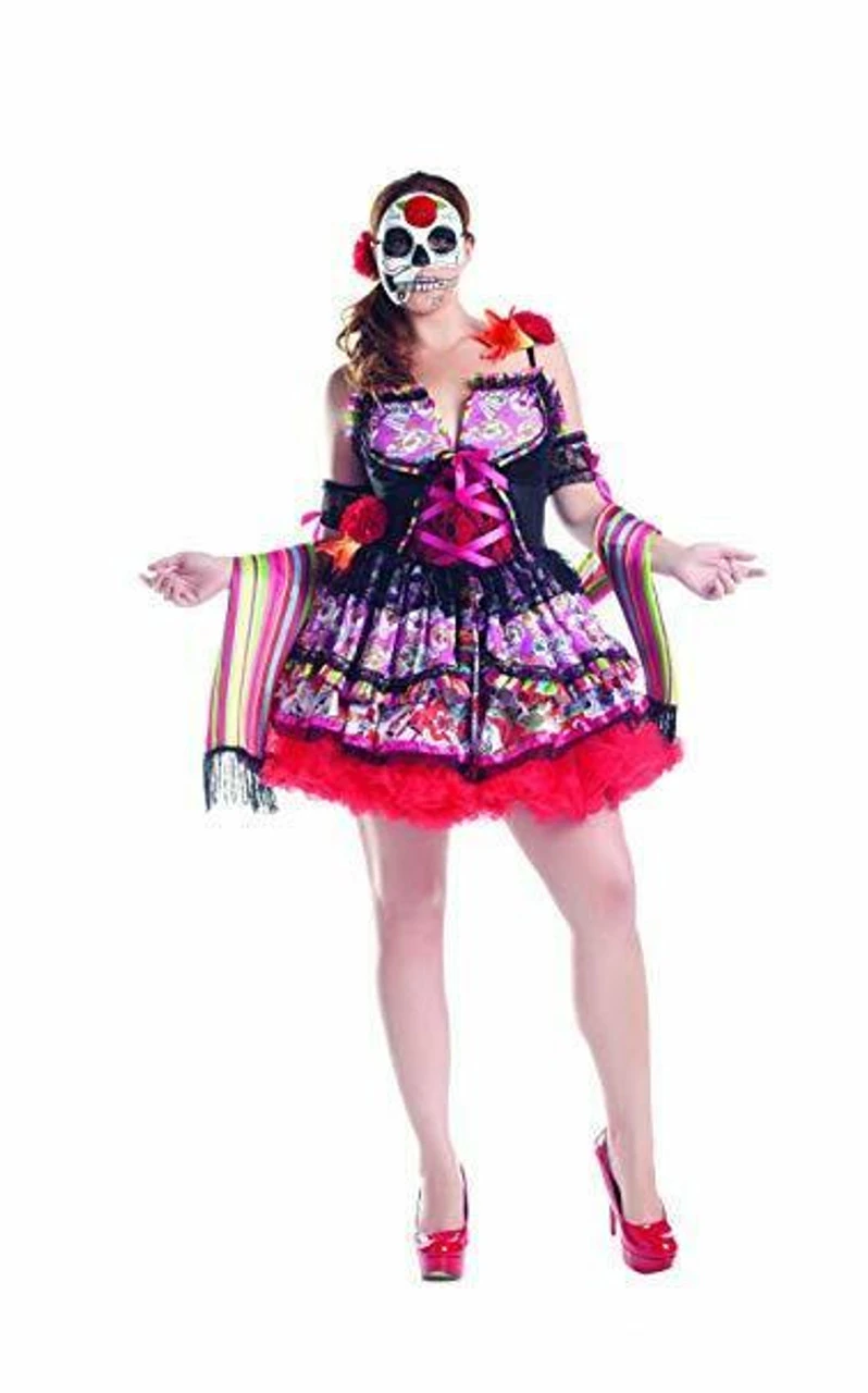 Party King Day Of The Dead Sugar Skull Plus Size Womens Halloween Costume PK156