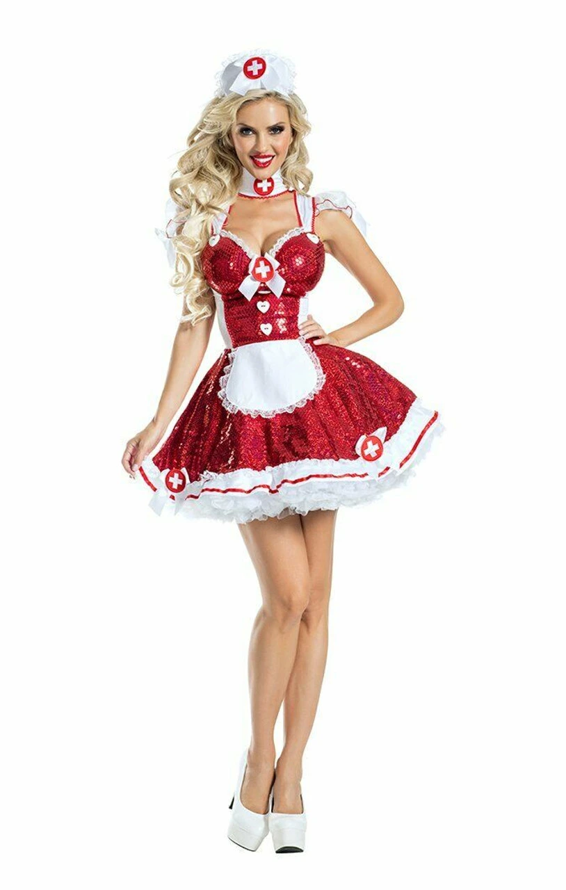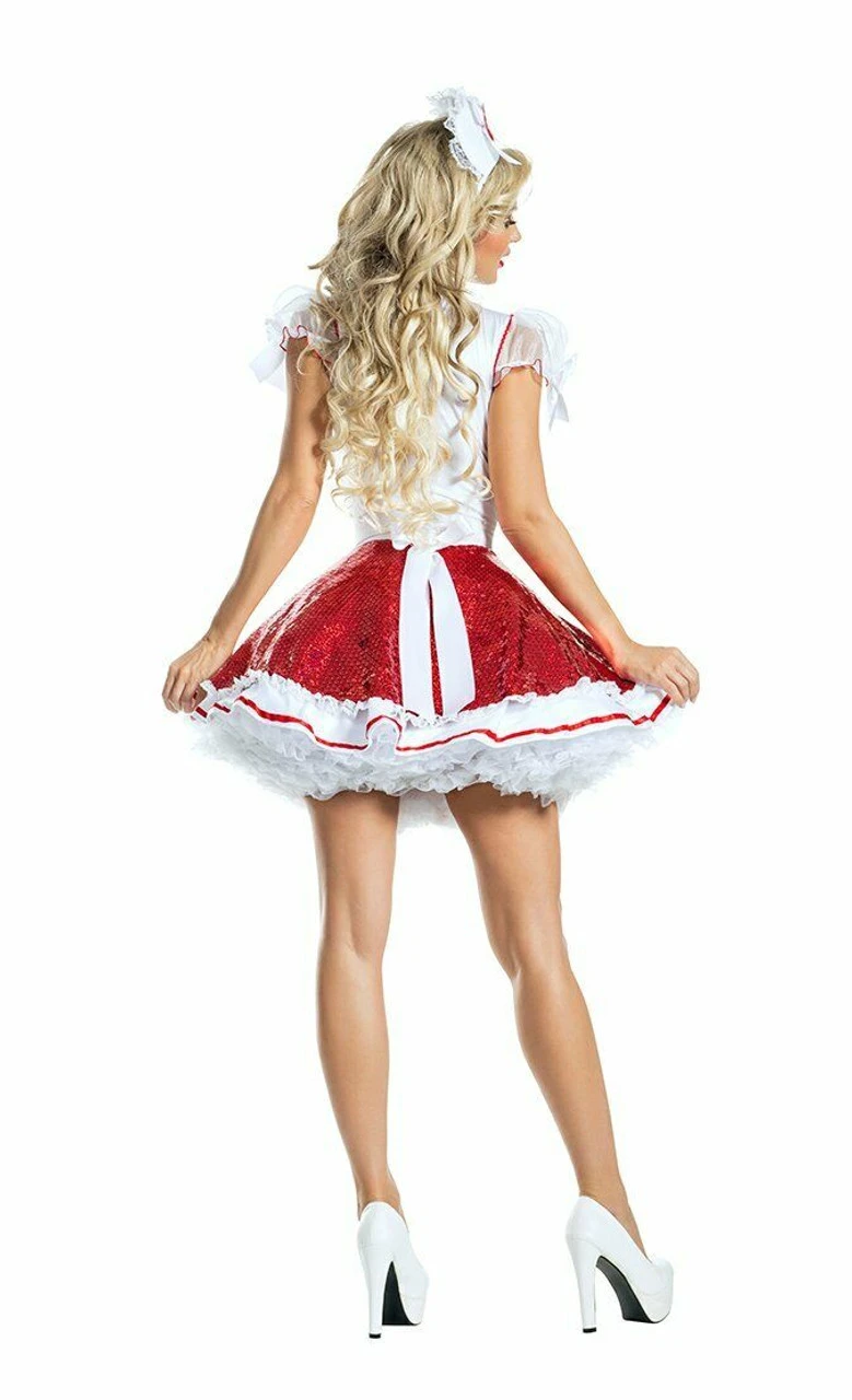 Party King Glam Nurse Sexy Sequin Hot Cosplay Hospital Halloween Costume PK1944
