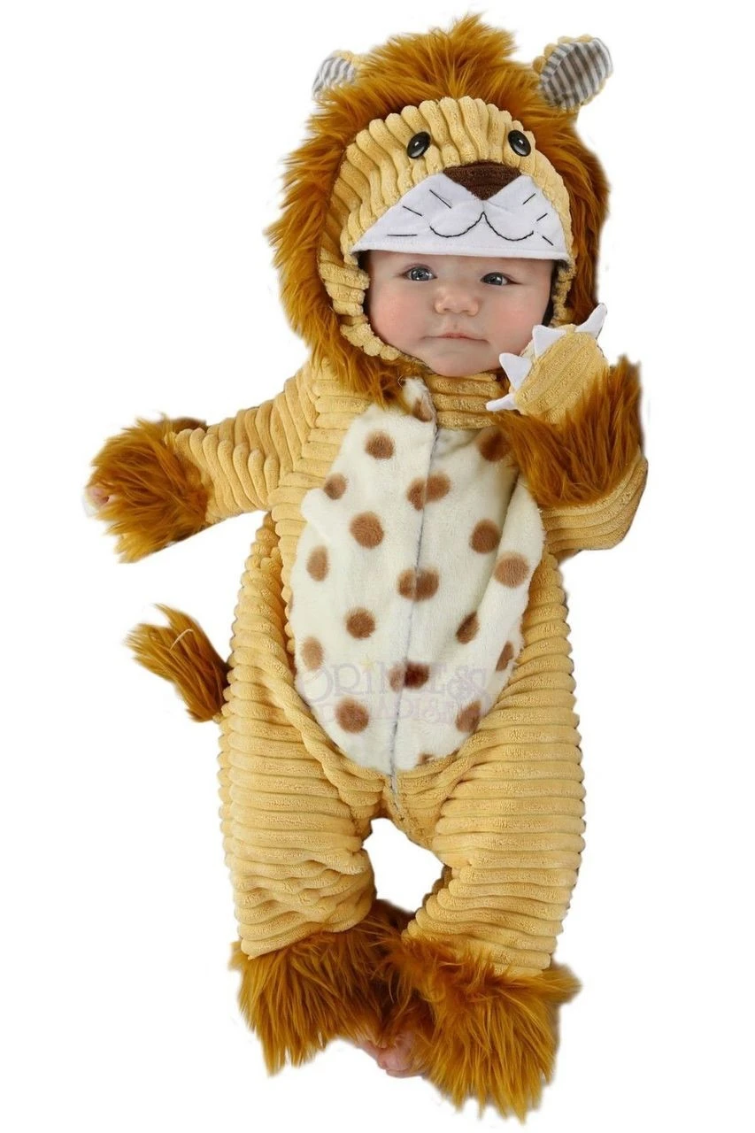 Includes: One-piece hooded adorable lion jumpsuit with zip-up front, attached tail and mitts