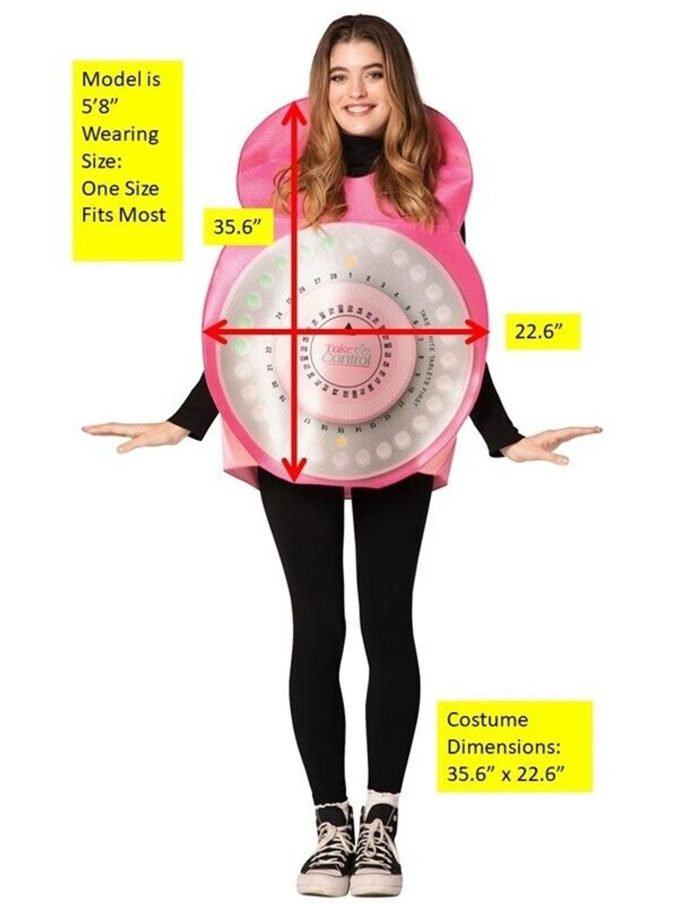 Don’t kid yourself! You’ll get plenty of attention wearing this Birth Control Contraceptive Pack Costume! This costume includes a foam tunic with a poly knit back. It is printed on the front only. It pulls over the head and has open arms for easy eating and drinking. One size fits most adults.