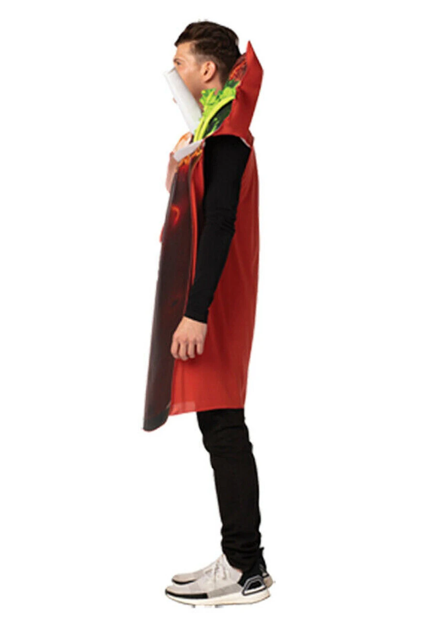 You say tomato I say bloody Mary! Don’t just sit there with your resting brunch face! Get moving and slip into the Bloody Mary Costume! Grab your best buds and mix and match costumes for great group fun! Designed to wear over your clothing for party friendly fun. Costume has 3D & Photo Real elements! The costume includes a tunic. Costume has 3D & Photo Real elements! Printed only on the front. One Size fits most adults. Easy wear & care! 100% Polyester. Hand wash inside out. Air dry. Freshen with steamer or cool iron.