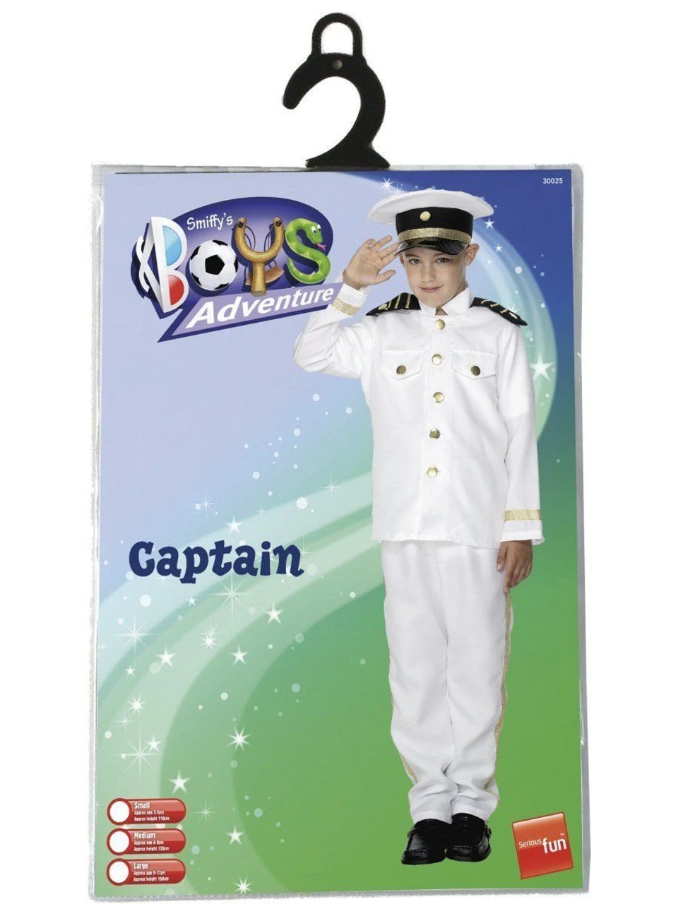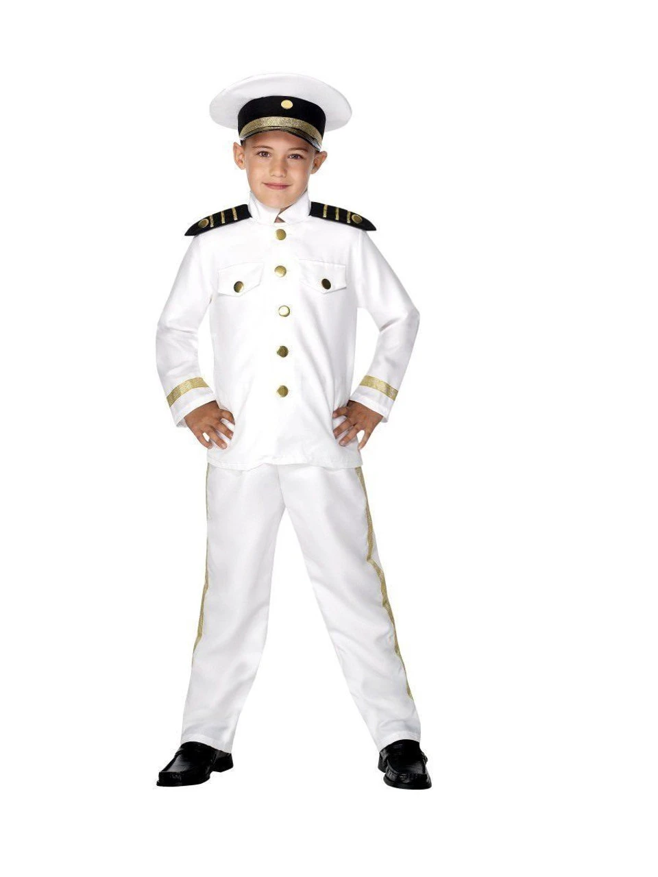 Captain Costume, Child, White, with Jacket, Trousers & Hat Put kids in control with the Captain Costume. This kids fancy dress costume includes a jacket, trousers and hat