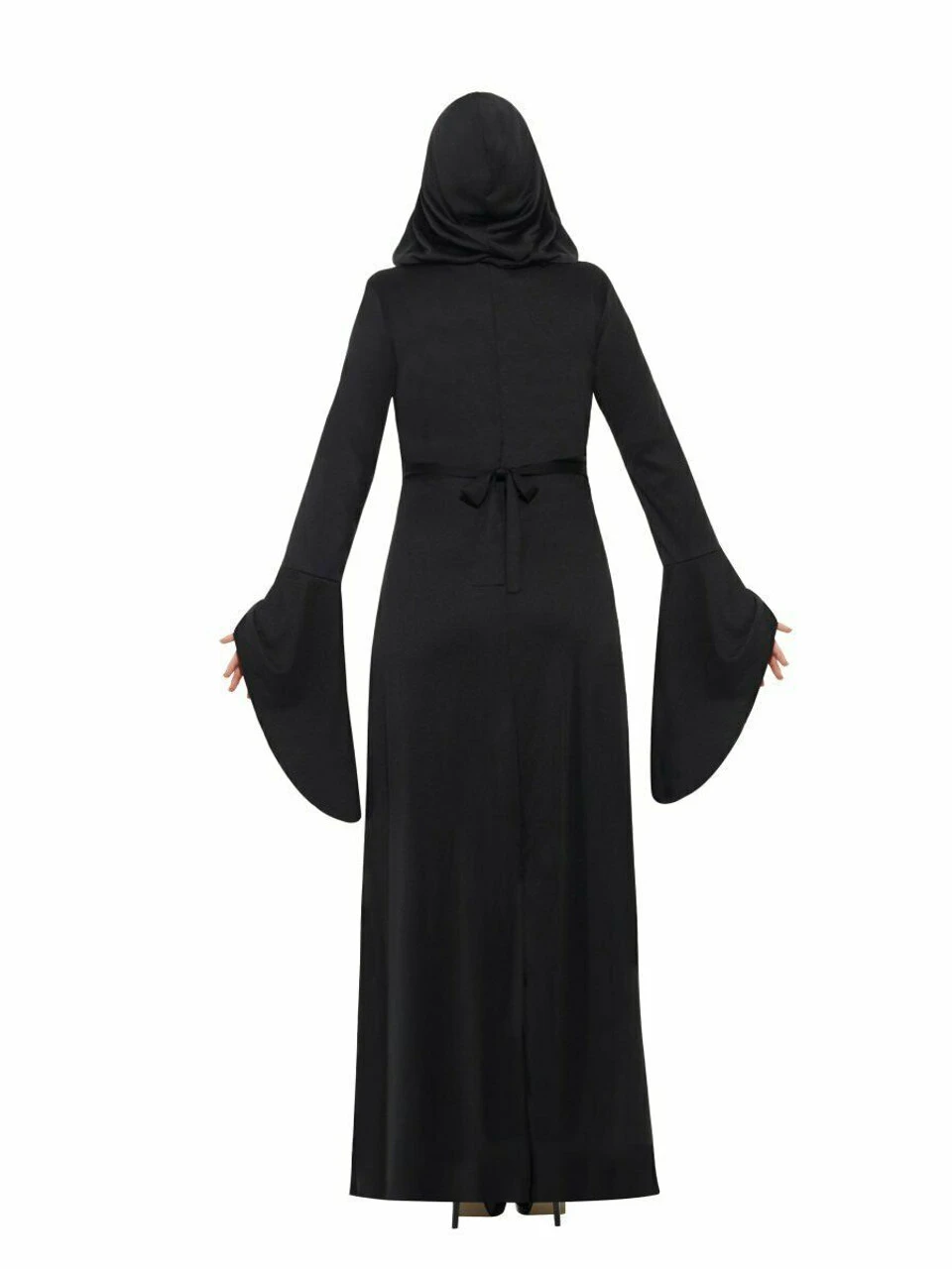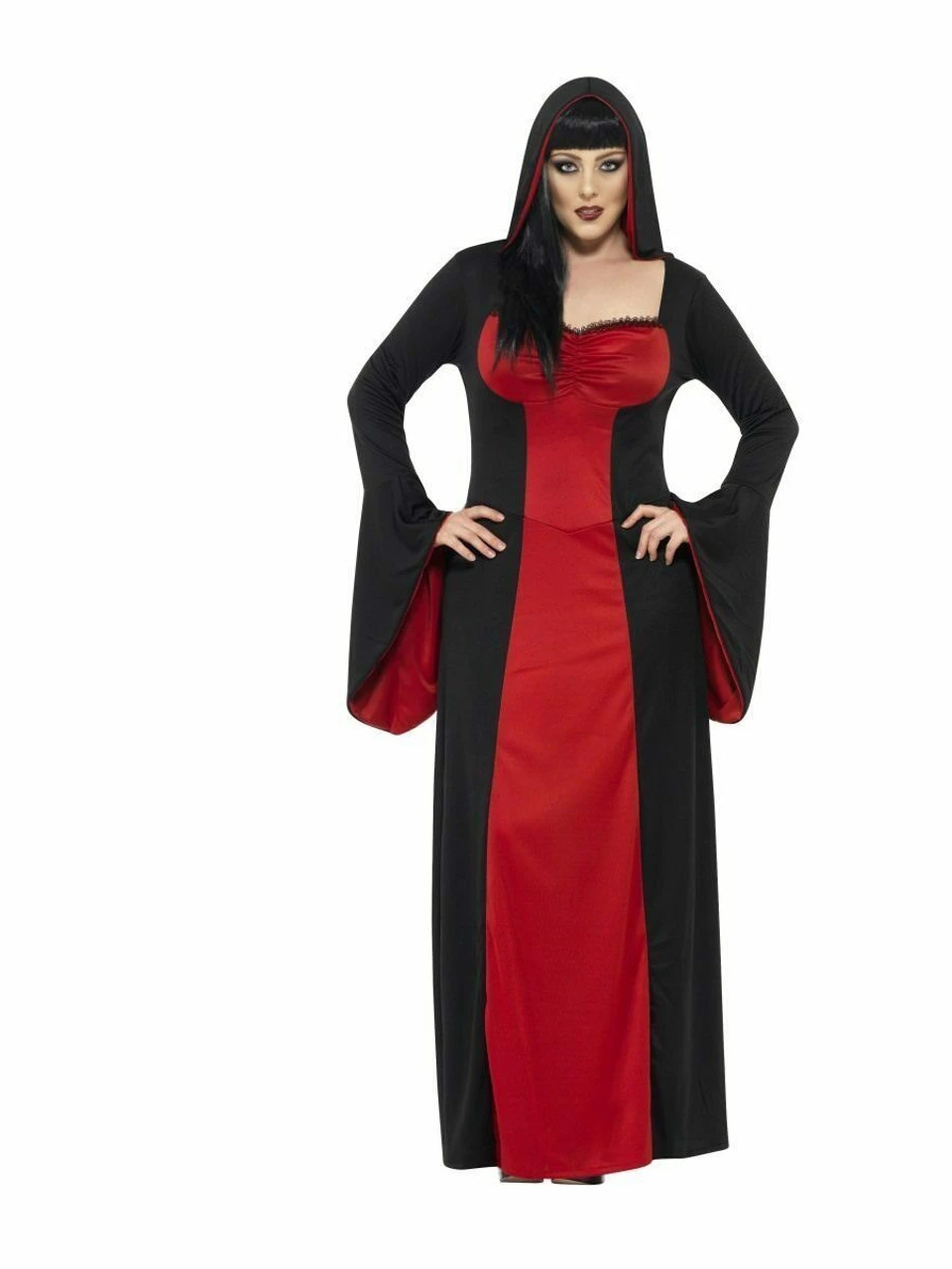 Tempt the Halloween horrors with the Dark Temptress Costume. This female Halloween costume is perfect for the scary season. Included is a red and black robe dress with an attached hood.Â