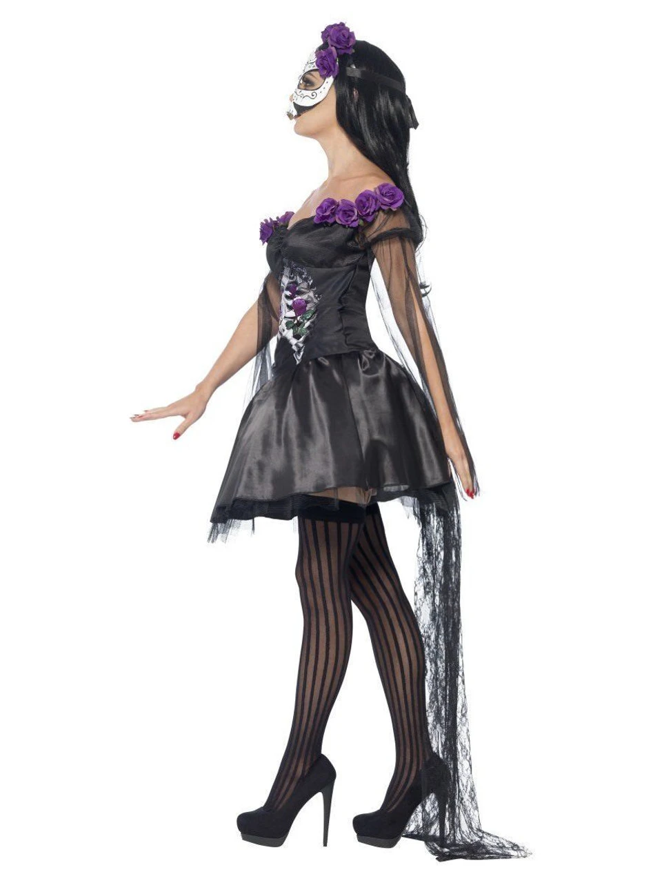 Includes : Day of the Dead Senorita Costume, Black, Printed Top, Skirt, Rose Headband & Latex MaskÂ