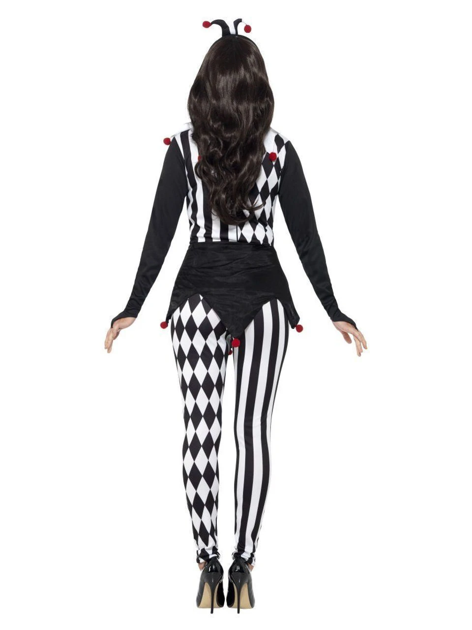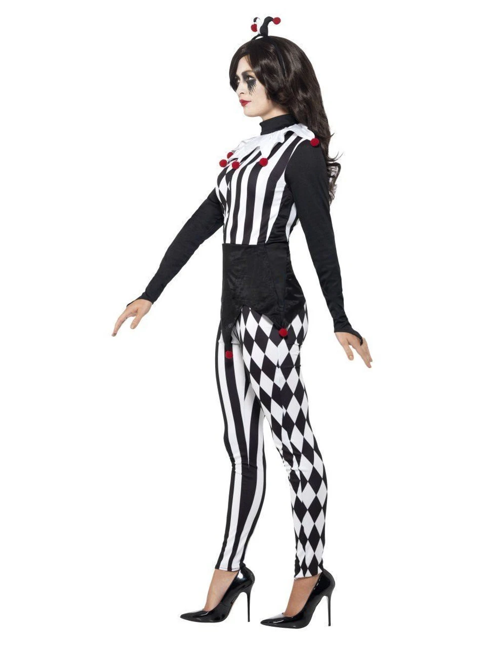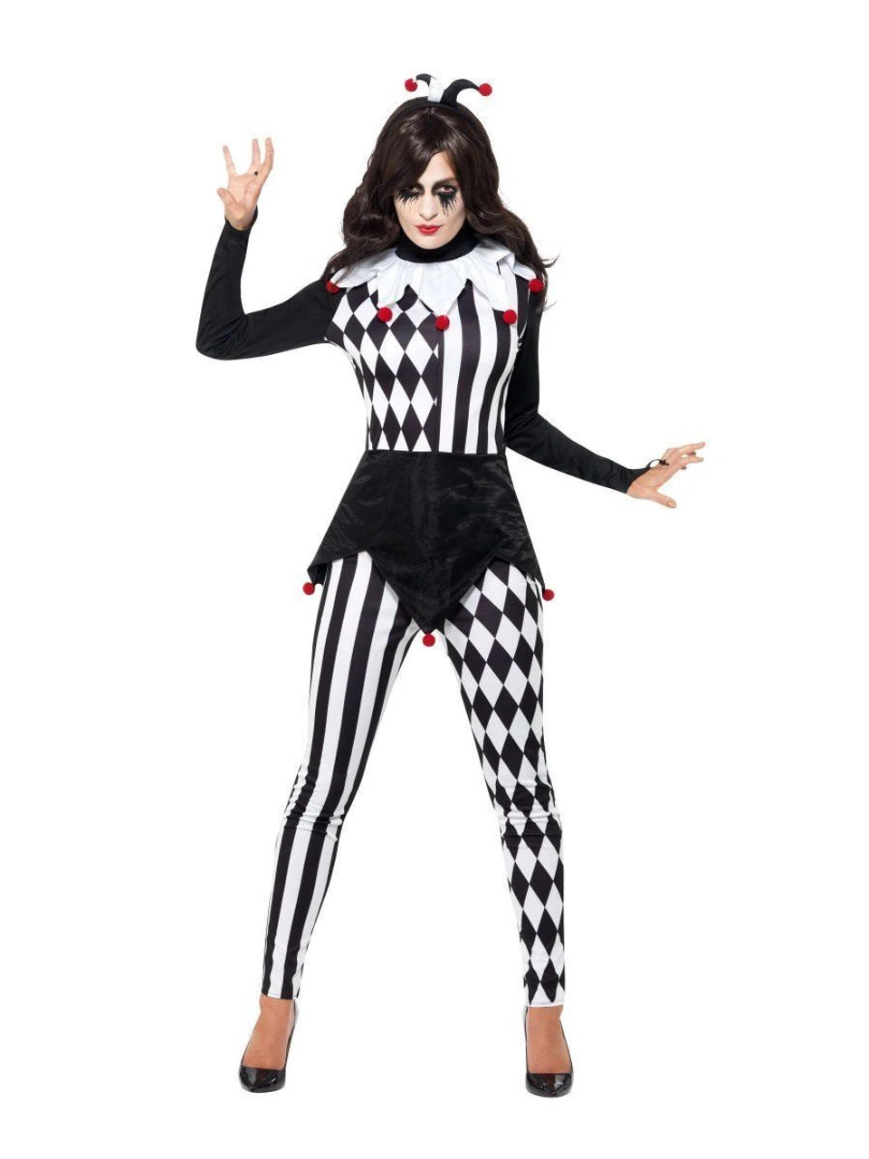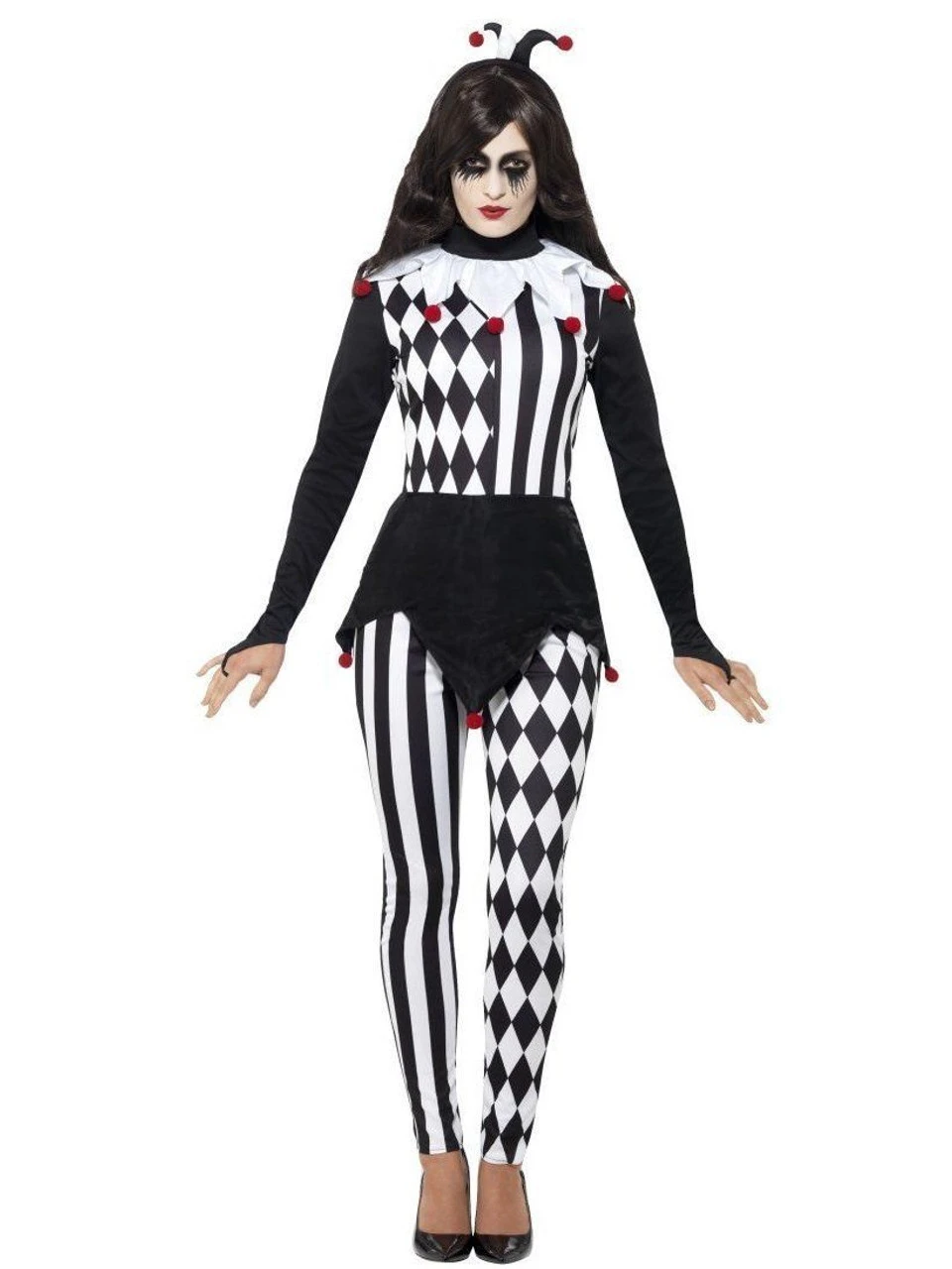 Female Jester Costume, Black, with Top, Leggings & Headband There’s something a little creepy about this jester?.which is perfect for a court of a creepy king and his subjects. Spread some Halloween fear!Â