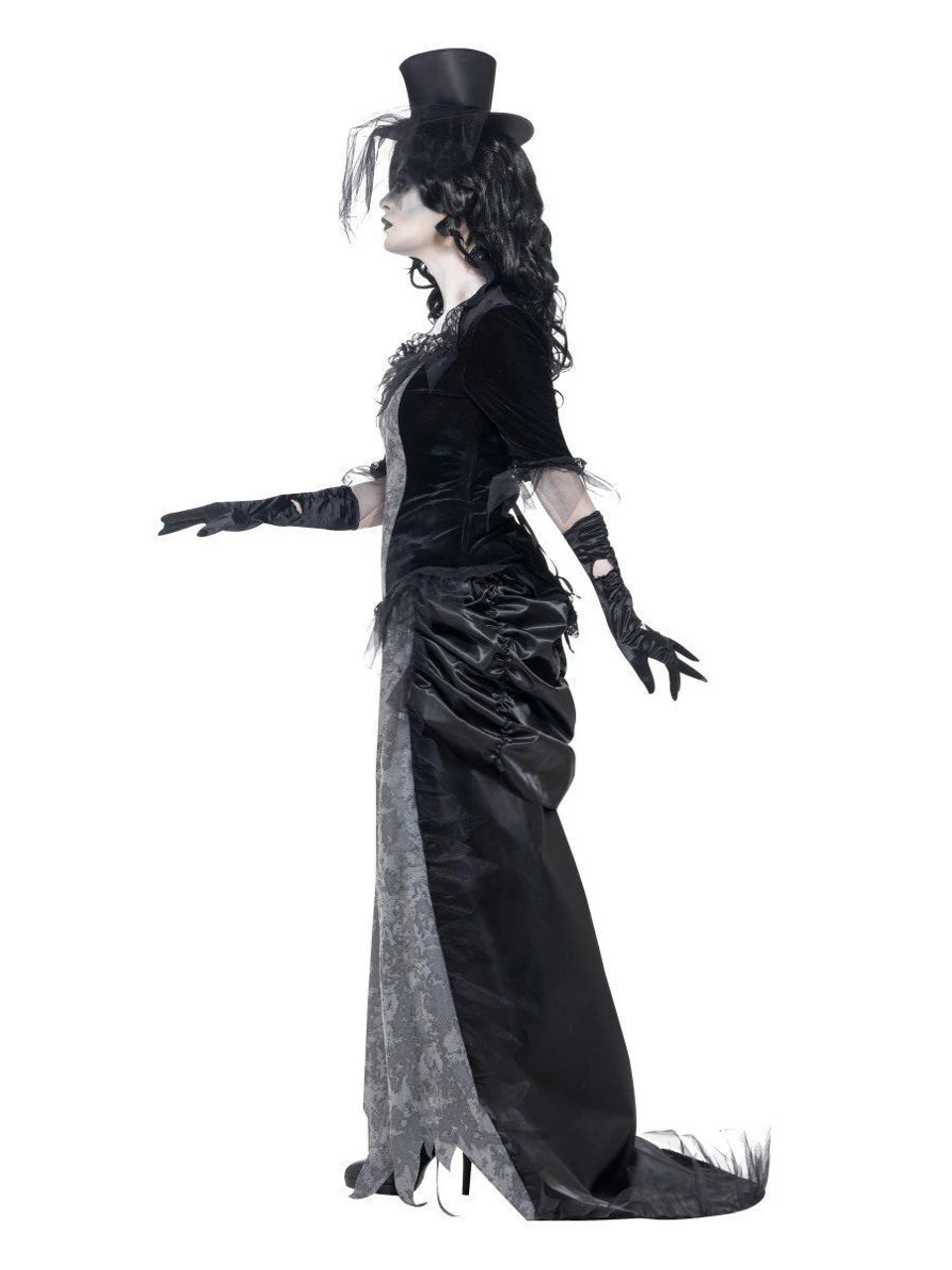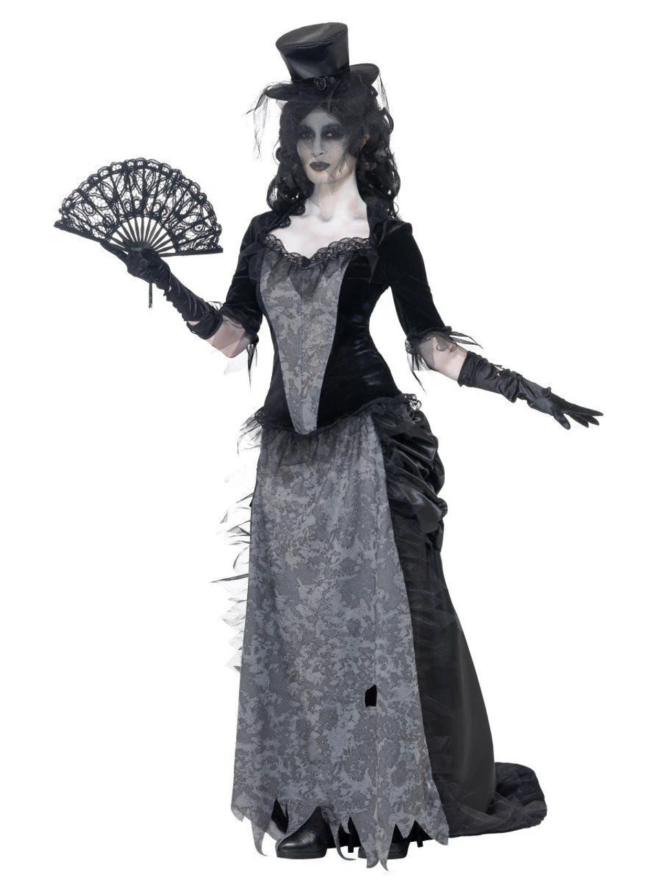 Includes :Â Ghost Town Black Widow Costume, Grey, with Top, Skirt, Hat, in Display Bag