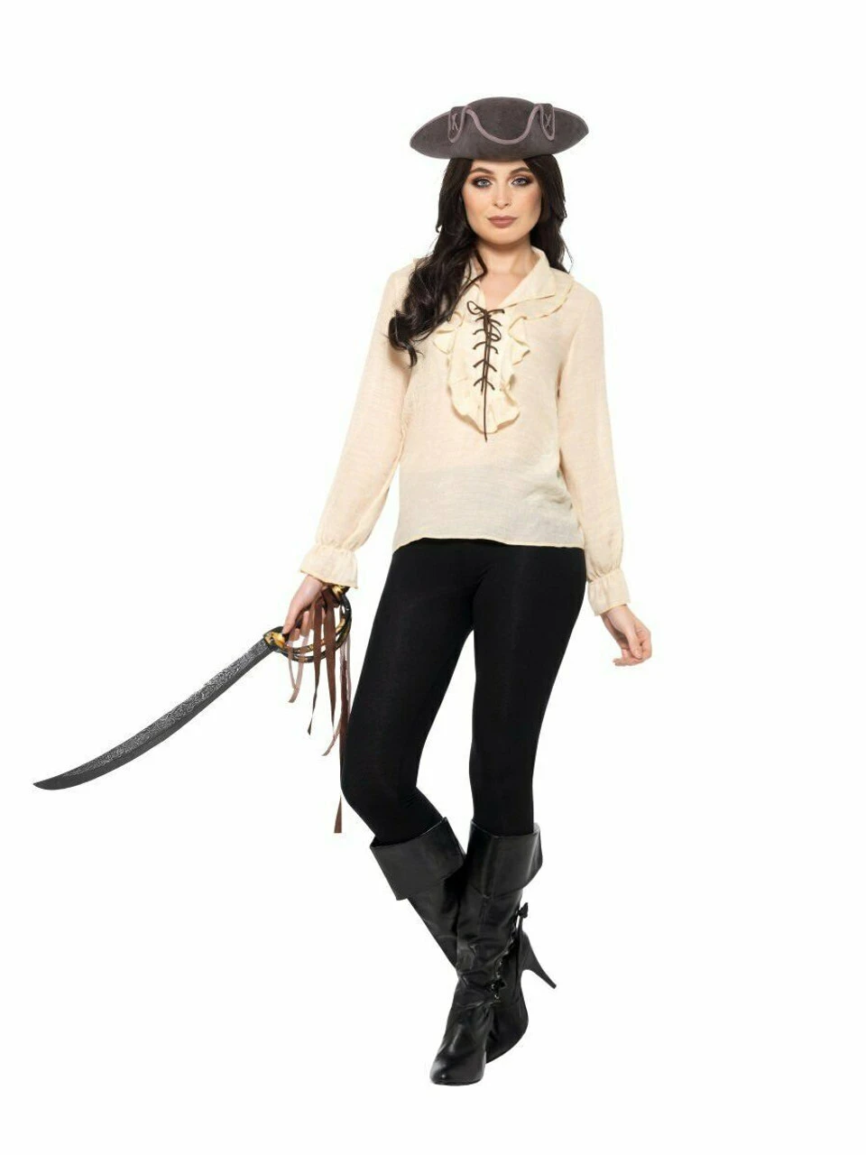 Shiver me timbers! If you want to create a truly unique Pirate Fancy Dress outfit then why not create your own custom costume beginning with a Pirate Shirt straight out of our Pirate Costume collection? This Swashbuckling Pirate shirt features a Black fabric top, with a Lace Up front that works wonderfully for creating your truly terrifying Pirate Costume