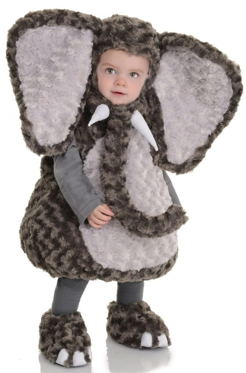 Elephants never forget. In this adorable Elephant Baby Belly toddler costume, you won’t be forgetting how cute your toddler looks. Featuring a plush swirl fur body, this sweet costume includes a hood and shoe covers.