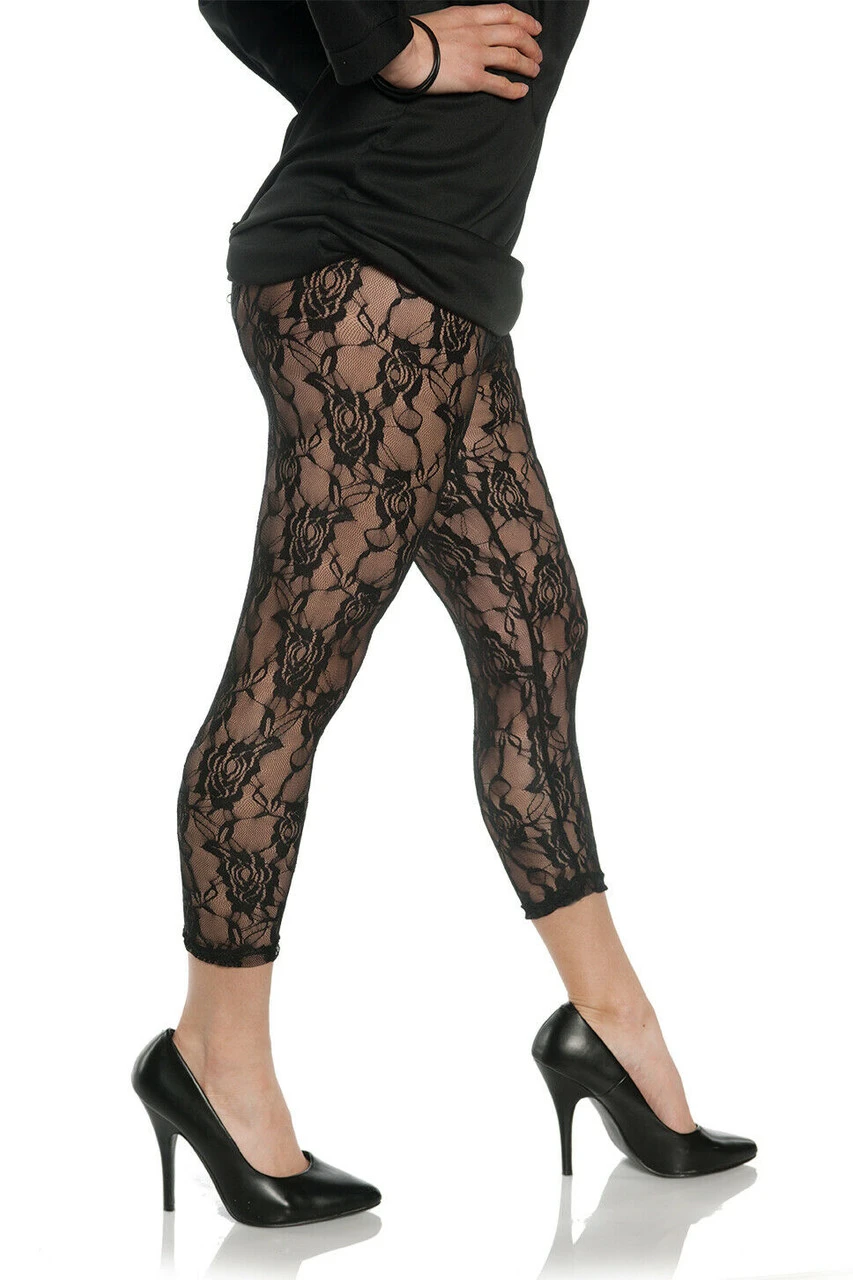 Underwraps Floral Lace Sheer Leggings Black Adult Womens Halloween Costume 28272