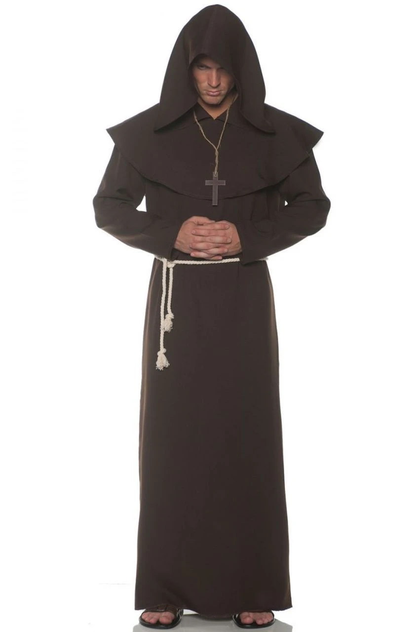 Looking for a traditional looking Monk Robe for a religious presentation or performance? Look no further than this Religious Monk Costume in brown. Featuring a solid brown robe, rope belt, and brown collar with attached hood, this costume will definitely leave quite an impression.